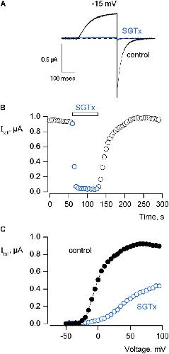 Lee, Solution structure and functional characterization of SGTx1, a modifier of Kv2.1 channel gating. 2004, Pubmed , Xenbase