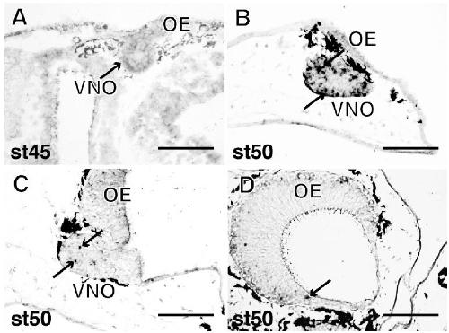 organs by in situ hybridization. Cross sections of Xenopus vomeronasal