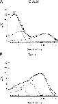 Figure 2. Example dwell-time histograms of single channel recordings. (A) Dwell-time histogram of the closed states of a single MEC-4d/10d + MEC-2 + MEC-6 channel. (B) Dwell-time histogram of the open states of the same channel as in A. For optimal visual estimation of fit quality (Sigworth and Sine, 1987), dwell times are accumulated into logarithmic bins and displayed with a square-root ordinate. Solid lines are fits to the data with the sum of three exponential functions, dotted lines represent each exponential component.