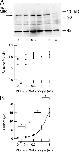 Figure 5. Surface expression and current amplitude as a function of MEC-2 cRNA. (A) Surface expression of myc∷MEC-4d in oocytes coexpressing myc∷MEC-4d, MEC-10d, MEC-2, and MEC-6 (top). The amount of MEC-2 cRNA is indicated below each lane; U indicates uninjected (control) oocytes. Relative surface expression as a function MEC-2 cRNA (bottom), normalized to density with 1 ng MEC-2 cRNA per oocyte. Data represent the results of three independent Western blots. Nonspecific bands are observed in all blots and are visible in uninjected cells. (B) Amiloride-sensitive currents recorded from oocytes analyzed in parallel with those used for Western blotting in A. Stars indicate significance P < 0.01 (Student's t test). Smooth line is fit to the data according to: I = I0 + (Imax − I0)(1 + [MEC-2 cRNA]/EC50)−1. The EC50 is 2.8 ng, IO = 0.48 μA.