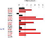 Figure 5. Summary of the tryptophan scan of Kv7.1 S4 in the presence of KCNE1.The cut-off for significance was ∥ΔΔG0c∥≥1.5 kcal.mol−1. The red and blue bars of the mutated residues shift the gating equilibrium in favor of the closed and open state, respectively. The black bars correspond to residues whose perturbation is not significant (∥ΔΔG0c∥<1.5 kcal.mol−1).