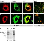 Figure 7. Colocalization of presenilin and SERCA2b. (A) Confocal images of fibroblasts showing dual staining for PS1 or PS2 (red) together with SERCA2b (green). Merged images with sites of colocalization in yellow are shown on the right. (B) Western blots show coimmunoprecipitation of SERCA2b with PS1 and PS2 in fibroblast cell lysates. Polyclonal rabbit anti-PS1 or -PS2 antibodies were used to immunoprecipitate SERCA2b, which was then detected using anti-SERCA2b antibody. No SERCA2b immunoprecipitation was apparent with a control (rabbit polyclonal anti-p35) antibody. Bar, 10 μm. |