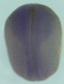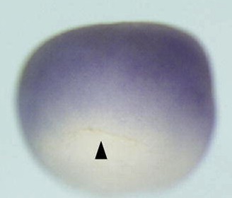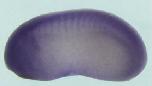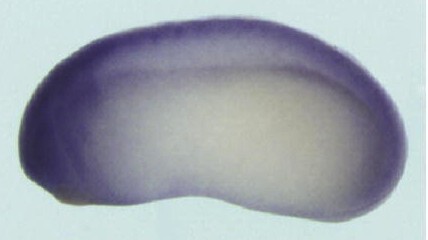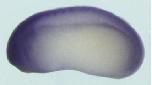 usf1 (upstream transcription factor 1 [provisional]) gene expression in Xenopus laevis embryo via in situ hybridization, NF stage 9, lateral view, dorsal up. |