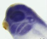 usf2 (upstream transcription factor 2 [provisional]) gene expression in Xenopus laevis embryo via in situ hybridization, NF stage 33,head region, lateral view, dorsal up, anterior left.