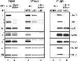 Figure 5. The Cdc7âkinase complex, but not free Cdc7, associates with Scc2. (A) LSS was depleted with either control (lanes 1,4,5,8,9) or a mixture of Drf1 and Dbf4 antibodies (lanes 2,3,6,7,10,11), and then supplemented with either buffer (lanes 1,2,4â6,8â10), or recombinant Drf1 (100 nM final concentration; lanes 3,7,11). IP from the resulting LSS extracts was performed with control (lanes 4,8) or Cdc7 antibody (lanes 5â7,9â11). Input (lanes 1â3), supernatants (IP-sup; lanes 4â7), immunoprecipitates (IP-ppt; lanes 8â11), and a serial dilution of the sample in lane 9 were probed with the indicated antibodies. (*) Cross-reacting band. (B) LSS was depleted with control antibody (lanes 1,6,7,12,13), a mixture of Drf1 and Dbf4 antibodies (lanes 2,3,8,9,14,15), or Cdc7-antibody (lanes 4,5,10,11,16,17), and then supplemented with either buffer (lanes 1,2,4,6â8,10,12â14,16) or 20 nM rDrf1 (lanes 3,5,9,11,15,17). IP from the resulting LSS was performed with control (lanes 6,12) or anti-Drf1 antibody (lanes 7â11,13â17). Input (lanes 1â5), supernatants (IP-sup; lanes 6â11), and immunoprecipitates (IP-ppt; lanes 12â17) were probed with the indicated antibodies. (*) Cross-reacting band. |