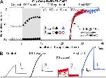 Figure 8. Estimating the rate of disulfide bond formation between Q1 I145C and E1 40C after DTT treatment. The experiment is divided into four phases. During the control and DTT (10 mM) washin phases, the membrane voltage is stepped from Vh −100 to +60 mV for 2 s and then to −60 mV for 2 s once every 60 s. The current amplitude at the beginning and end of the step to +60 mV (Istep and Itotal, respectively) are monitored. After the DTT effects reach a steady state, the DTT washout phase begins during which the membrane is held at −100 mV for 15 min without depolarizing pulses. Then the ‘post-DTT’ phase begins that consists of two parts. During the first part, short (0.2 s) pulses to +60 mV applied once every 15 s are used to monitor the development of the constitutive component as indicated by the increase in Istep. Once the constitutive component reaches a steady state, the voltage clamp protocol is switched back to the 2-s depolarization pulses applied once every 60 s (as described above) to monitor the stability of Itotal and Istep. (A) Average time course of changes in Itotal and Istep. Data are pooled from four experiments. In each experiment, the amplitudes of Itotal and Istep are normalized by their final values at the end of the experiment to allow data averaging. The black curve superimposed on data points obtained during the post-DTT 0.2-s pulse period represents an exponential fit to the time course of development of the constitutive component. The time constants are converted to cumulative depolarization time at +60 mV (0.85 ± 0.14 s, n = 4). (B) Original current traces from one representative experiment. Note the change in time calibration for the 0.2-s pulse current traces. The horizontal line denotes zero current level. |