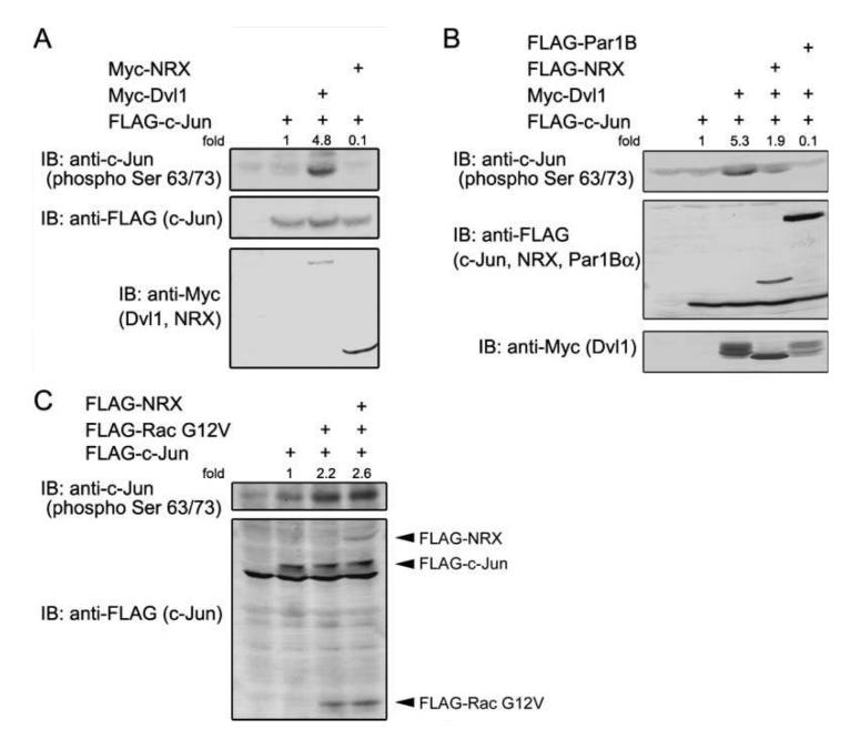 Figure 7 NRX suppresses c-Jun phosphorylation. NIH3T3 cells transfected with FLAG-c-Jun and indicated constructs were harvested,