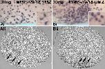 Fig. 5. Macrophage localisation and morphology. In the triple loss-of-function embryos the macrophages are rounded in shape and stay in the mesenchyme and between the epidermis and mesenchyme. (A) 30Â ng MMP-7/9/18 injected into the VMZ. (B) 30Â ng MMP-7/9/18 morpholino injections into the DMZ. Ai and Bi show in situ hybridisation of macrophages with POX2 as a probe, viewing the ventrallateral side of the embryo. Insert boxes show close ups of the macrophages. Aii and Bii show transverse sections of the embryos. Arrows point to individual macrophages.