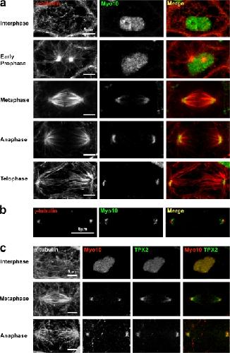 Myosin-10 and actin filaments are essential for mitotic spindle function.