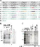 Supplementary Fig. S2. Identification of trans-acting factors that bind to the Shirin 3â²UTR by RNA affinity chromatography and mass spectrometry. (A) Amino acid sequence of hnRNPA/B and of the different peptides determined by mass spectrometry from purified p50 (underlined). The 9 peptides, some of which overlapped, all mapped to Xenopus A/B-type hnRNP. (B) To confirm that the p50 purified protein is hnRNPA/B, we immunoprecipitated the complex p50 UV cross-linked to Shirin 3â²UTR probe. 32P-labeled Shirin 3â²UTR was incubated with tadpole protein extracts, UV cross-linked to bound proteins and immunoprecipitated using an antiserum directed against hnRNPA/B (kind gift of S. Pinol-Roma) (lane 2) or preimmune serum as negative control (lane 3). Only the hnRNPA/B antiserum immunoprecipitated specifically the Shirin 3â²UTR/protein complex following UV cross-linking experiment (lane 2). Lane 1 shows the polypeptide complex UV cross-linked before immunoprecipitation. This result is in agreement with the fact that ARE motifs binding sites for hnRNPA/B (C) Amino acid sequence of Ilf-2/NFAT and of the different peptides identified by mass spectrometry from purified p46 (underlined). The 16 peptides, some of which overlapped, all matched to and covered about 30% of Xenopus Ilf2/NFAT sequence. |