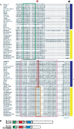 Figure 4. A ‘standard’ phylogenetic tree. This tree illustrates the relative position of the organisms examined here and is provided as a quick reference for taxonomic relationships, based on the Tree of Life Web Project. (A) The Kingdom Animalia/Metazoa was searched. Only those branches for organisms containing a Nudt16 ortholog are shown. (B) An expansion of the vertebrate branch reveals the conservation of Nudt16 and appearance of Syndesmos. The ‘N’ indicates branches with organisms containing Nudt16 orthologs, ‘S’ indicates branches containing Syndesmos and ‘asterisk’ indicates the likely gene duplication event; acknowledging the possibility that it may have occurred earlier with high rates of subsequent gene loss. Sequences ‘below’ the ‘asterisk’ have only the Nudt16 protein.