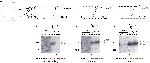 (C) Detection of the nascent top strand and the adducted parental top strand (Top-AD) on the membrane in (B) by Southern blotting using a bottom-strand probe.