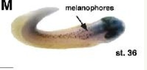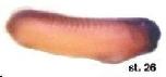 c2orf49 (chromosome 2 open reading frame 49) gene expression in Xenopus laevis embryo, assayed via in situ hybridization, NF stage 26, , lateral view, dorsal up, anterior right. |