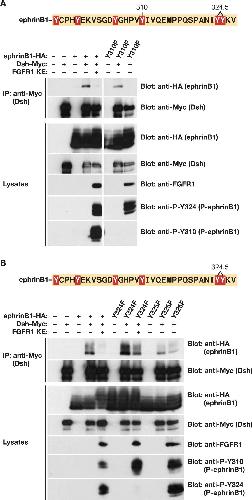 Kalo, In vivo tyrosine phosphorylation sites of activated ephrin-B1 and ephB2 from neural tissue. 2001, Pubmed