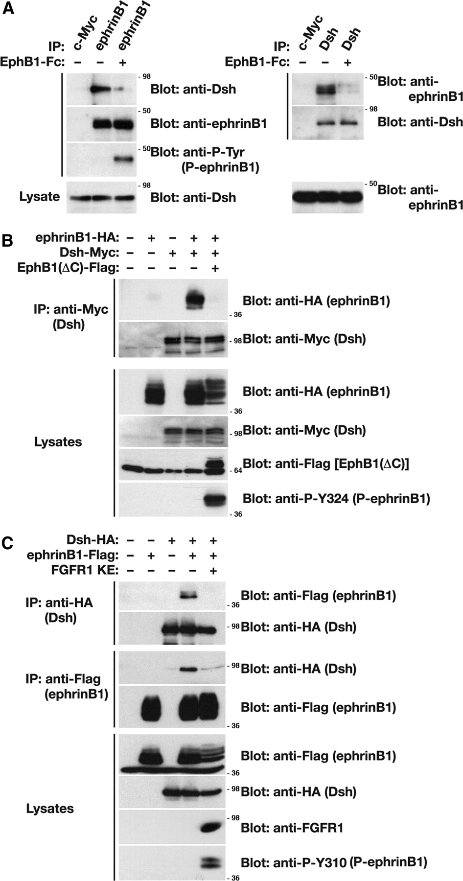Fibroblast growth factor receptor-induced phosphorylation of ephrinB1 modulates its interaction with Dishevelled.