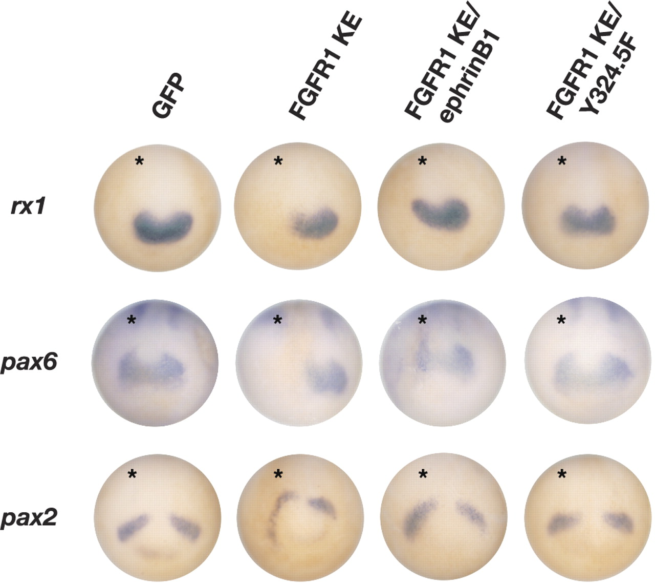 Genes referenced: dvl1 dvl2 efnb1 ephb1 fgf2 fgfr1 myc pax2 pax6 rax rhoa