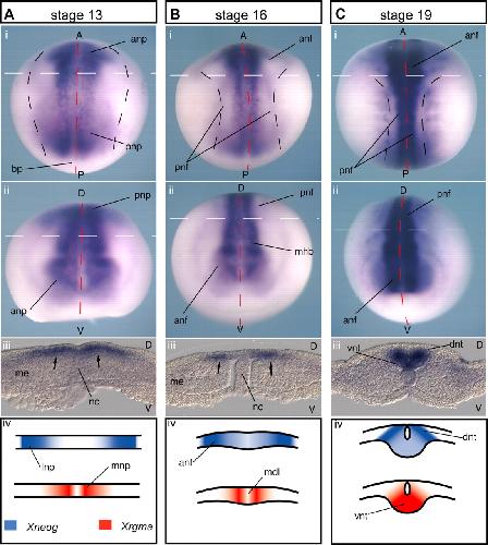 above panels; (iv), schematic of complementaryXneogandXrgmaexpression domains. lnp, Lateral neural plate; mdl, midline;