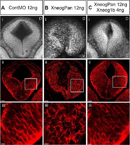 with XneogPanMOrescues neuraltubemorphology. Aiii,BiiiandCiiiare highermagnification of images of boxed areas in Aii,Bii
