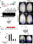 Figure 5. Knockdown of Xtbx6, or pMesogenin1 and 2. A: Schematic diagram of partial genomic structure of the Xtbx6 gene. Bent line displays intron1. B: RT-PCR analysis of Xtbx6 exint-MO- or 5mis-MO-injected embryos (50 ng each). Arrow indicates the position of the long splicing variant mRNAs. Genome, Xtbx6 genomic DNA. ODC was used as the loading control. C: Xtbx6 exint-MO (25 ng) and beta -gal mRNA (200 pg) were co-injected into the VMZ and DLMZ at the 4-cell stage. D-G: Expression patterns of pMesogenin1 (D, E) and pMesogenin2 (F, G) in Xtbx6 exint-MO-injected embryos at stage 20, revealed by whole-mount in situ hybridization. D, F: Representative embryo injected with Xtbx6 exint-MO. E, G: Representative embryo rescued by co-injecting Xtbx6 mRNA (2 pg) with Xtbx6 exint-MO. H: pMsgn MO designed to bind to the translational start regions of both pMesogenin1 and 2. I: pMsgn MO suppressed the luciferase activity of pMsgn2-Luc. J: pMsgn MO (50 ng) or pMesogenin1-EnR (100 pg) and/or pMesogenin2-EnR (100 pg) was injected with beta -gal mRNA (200 pg) into the VMZ at the 4-cell stage. K, L: The expression pattern of Xtbx6 in pMsgn MO- or dominat-negative pMesogenins-injected embryos at stage 18, revealed by whole-mount in situ hybridization.