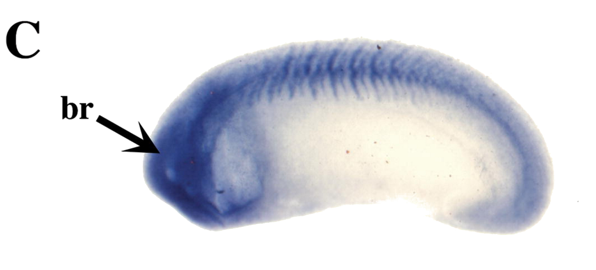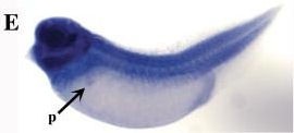 ADAM metallopeptidase domain 19 (Adam19) gene expression in Xenopus laevis embryo, assayed via in situ hybridization, NF stage 24, lateral view, anteriorleft, dorsal up.