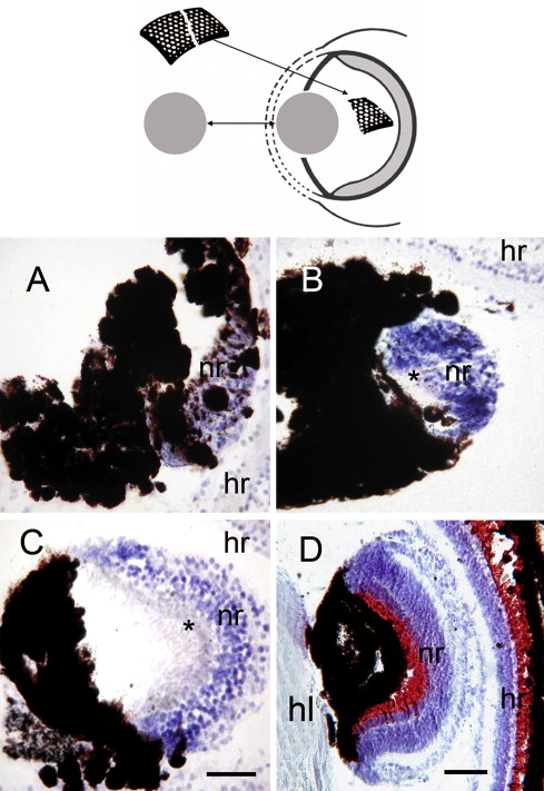 Anuran amphibians can regenerate the retina through differentiation of stem cells in the ciliary marginal zone and through transdifferentiation of the retinal pigmented epithelium. By contrast, the regeneration of the lens has been demonstrated only in larvae of species belonging to the Xenopus genus, where the lens regenerates through transdifferentiation of the outer cornea. Retinal pigmented epithelium to neural retina and outer cornea to lens transdifferentiation processes are triggered and sustained by signaling molecules belonging to the family of the fibroblast growth factor. Both during retina and lens regeneration there is a re-activation of many of the genes which are activated during development of the eye, even though the spatial and temporal pattern of gene expression is not a simple repetition of that found in development.
