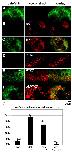 Fig. 1. PTK7 recruits dsh to the plasma membrane. Animal caps were injected with different tagged RNAs, and protein localization was analyzed by confocal microscopy. The GFP-tagged dsh (green, left), the co-expressed myc-tagged protein (red, middle) and the merged pictures (right) are shown. (A) GFP-tagged dsh is localized to the cytoplasm of animal caps injected with 100 pg dsh-GFP RNA. (B) Myc-tagged fz7 is predominantly membrane localized in animal caps injected with 100 pg fz7-myc RNA. (C) Co-injection of 100 pg dsh-GFP and 100 pg fz7-myc RNA leads to membrane recruitment of dsh. (D) PTK7 is membrane localized in animal caps injected with 500 pg myc-tagged PTK7 RNA. (E) Animal caps co-injected with 100 pg dsh-GFP RNA and 500 pg PTK7-myc RNA show membrane-recruitment of dsh. Cells that do not express PTK7 in the membrane do not show membrane-localization of dsh (white arrowhead). (F) Animal caps injected with 250 pg RNA coding for a PTK7 mutant lacking the conserved kinase domain (δkPTK7) and 100 pg dsh-GFP RNA do not show membrane localization of dsh. (G) Graph summarizing the percentage of cells with membrane-localized dsh. For colocalization assays using PTK7 or fz7, only cells in which these proteins were membrane localized were analyzed. To determine the number of cells with cytoplasmic dsh localization DAPI co-staining was used. The total number of cells is indicated above each column.