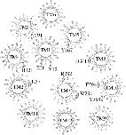 Figure 1. Helical wheel plan of the TMDs in PepT1 showing the putative relative proximity of H57, R282 and D341 in the TMDs 2, 7 and 8, respectively, in the homology model of rabbit PepT1 (modified from Meredith & Price 2006).