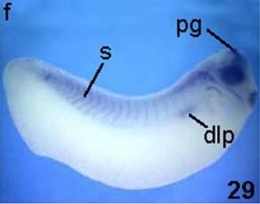 btbd6(BTB (POZ) domain containing 6) gene expression in Xenopus laevis embryos, NF stage 29, as assayed by in situ hybridization. Lateral view: anteriorright, dorsal up.