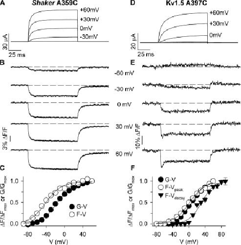 Gandhi, Reconstructing voltage sensor-pore interaction from a fluorescence scan of a voltage-gated K+ channel. 2000, Pubmed