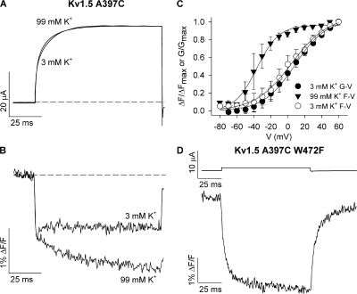 Voltage clamp fluorimetry reveals a novel outer pore instability in a mammalian voltage-gated potassium channel.