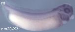 nme4 (NME/NM23 nucleoside diphosphate kinase 4) gene expression in Xenopus laevis embryo, assayed via in situ hybridization, NF stage 29, lateral view, anterior right, dorsal up. |