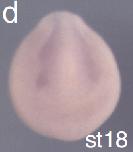 nme4 (NME/NM23 nucleoside diphosphate kinase 4) gene expression in Xenopus laevis embryo, assayed via in situ hybridization, NF stage 18, anterior view, dorsal up. |