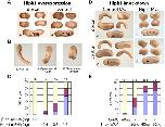 Figure 7. Hipk1 knock-down and Xdd1 over-expression synergize to perturb gastrulation.(A) Reduction of Hipk1 levels by morpholino, or interference with Dsh function by expression of a dominant negative protein (Xdd1), each produce no gastrulation defects at low doses, with only mild neural tube closure defects (b, c vs. control a). Combining these low-dose treatments produces gastrulation defects plus more severe neural tube closure defects (d, e). (B) Gastrulation defects are present in 68% of embryos in the Xdd1+Hipk1MO group, but not at all in groups injected with either Xdd1 RNA or Hipk1MO alone. |