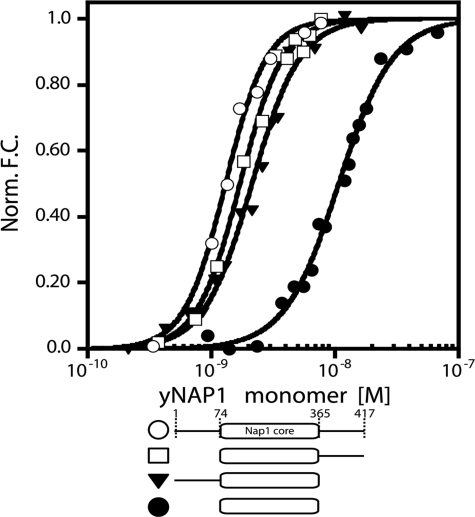 circles), yNap1(74–417) (open squares), yNap1(1–365)