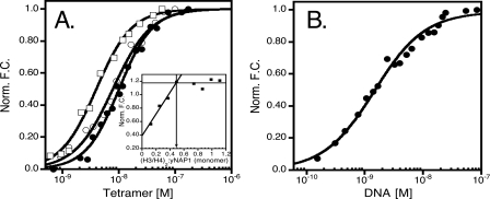 normalized fluorescence change as a function of histone tetramer binding to
