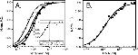 tetramer) (open squares). Inset of A is the