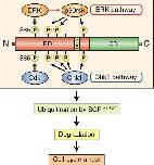 Figure 7. Model for the mechanism of Xe-Cdc25A degradation and cell cycle arrest induced by the ERK pathway. On strong activation of the ERK pathway, ERK phosphorylates Xe-Cdc25A on S85 (which normally is phosphorylated by Cdk) and other Ser residues (omitted), whereas the downstream kinase p90rsk phosphorylates Xe-Cdc25A on other multiple Ser residues (which overlap with Chk1 phosphorylation sites). These phosphorylations facilitate ubiquitination of Xe-Cdc25A by SCFβ-TrCP, thereby targeting the phosphatase for degradation and causing cell cycle arrest at interphase. For details, see text. RD, regulatory domain; DDG, DDG motif; CD, catalytic domain.