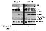 Mos is able to activate MAPK and Rsk in stage IV oocytes but does not promote MPF activation. Stage IV and stage VI oocytes were injected with mouse Mos mRNA. After overnight incubation, they were incubated or not in the presence of progesterone. Stage IV oocytes were collected 4 hours after GVBD occurred in stage VI oocytes. Oocyte extracts were western blotted with antibodies against Rsk, Cdc25, Xenopus Mos (XeMos), the active phosphorylated form of MAPK (P-MAPK), the Tyr15-phosphorylated form of Cdc2 (P-Tyr-Cdc2), cyclin B1 and cyclin B2.