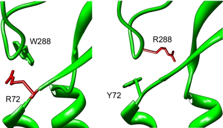 was obtained by substituting Tyr-72 and Trp-288 in the crystal structure of