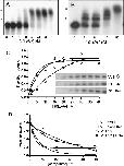 RNA binding activity of 40LoVe. The indicated concentration of 40LoVe was incubated with 2 nM internally radiolabeled VLE RNA (A) or VTE RNA (B). Samples were analyzed by electrophoresis on nondenaturing polyacrylamide gels. Asterisks mark the position of observed RNP complexes. (C) Binding assays were carried out in the same conditions with VLE, VTE, or nonspecific (ns) RNA. After crosslinking by UV irradiation and digestion with ribonucleases, the samples were analyzed by SDS–PAGE followed by autoradiography to detect radiolabeled protein (insert). Quantification of the autoradiograph using ImageJ software was used to construct binding isotherms. (D) Competition assays contained 10 nM 40LoVe and 2 nM radiolabeled VLE or VTE RNA and the indicated amount of unlabeled competitor RNA. Samples were crosslinked by UV irradiation, digested with ribonucleases, and then analyzed by SDS–PAGE/autoradiography. Radiolabeled VLE RNA competed against unlabeled VLE (○) or nonspecific (□) RNA; radiolabeled VTE RNA competed against unlabeled VTE (△) or nonspecific (■) RNA.