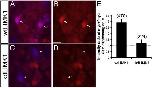 Fig. 4. wtLIMK1 increases the phosphorylation of cofilin. Stage 27 embryos were electroporated with GFP and either wtLIMK1-MT or kdLIMK1-MT, fixed at stage 37/38, cryostat sectioned and immunolabelled for P-cofilin1. (A, C) Merged images of myc-expressing diencephalic cells in blue (arrows) and P-cofilin1 expression in red, for wtLIMK1- (A) and kdLIMK1-electroporated (C) embryos. The matching images of P-cofilin expression alone are also shown for each condition (B: wtLIMK1, D: kdLIMK1). Scale bar is 10 μm. The intensity of P-cofilin1 expression in myc+ and mycâ GFP-expressing cells was scored in a blinded fashion on a scale of 0â3. (E) Graph showing the ratio of the average P-cofilin1 intensity between myc+ and mycâ GFP-expressing cells for each condition. Only for wtLIMK1-expressing cells was there an increase in P-cofilin1 expression in the myc+ cells compared to the mycâ cells. |