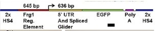 The proximal frg1 promoter sequence from X. tropicalis, consisting of a 645 base pair (bp) upstream regulatory region and 636 bps of the transcribed 5 untranslated region (UTR), was inserted upstream of EGFP (enhanced green fluorescent protein) into a transgene cassette that was flanked by chicken β-globin insulator [hypersensitive site 4 (HS4)] doublets (Fig. 1D)