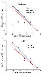 Figure 4. Fluorination plots. Note that in both plots, all data sets share the point at x = 32.6 kcal/mol (cation-π energy for Trp); y = 0 (black circle). Moving to the left then corresponds to monofluoro-, difluoro-, trifluoro- and tetrafluoro-TrpB. Cation-π binding energies (x-axes) are from 9. a. Muscle-type receptor. The designation “wt indicates G at position 153. b. α4β2 receptor.