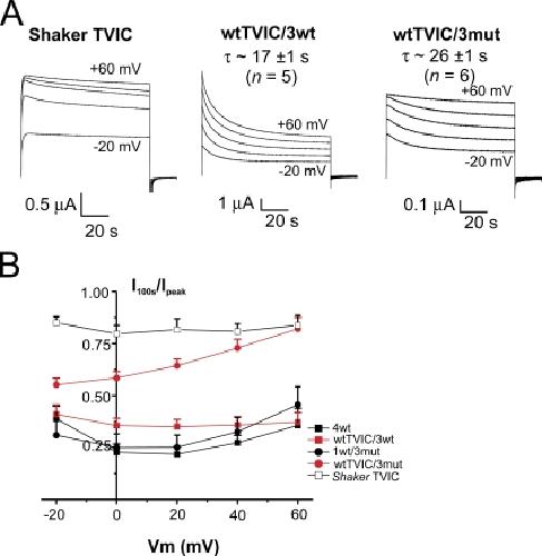 Olcese, Correlation between charge movement and ionic current during slow inactivation in Shaker K+ channels. 1997, Pubmed , Xenbase