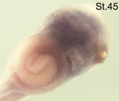 Ventral view of a X. laevis tadpole, NF stage 45, showing the external and internal coils of the small intestine. |