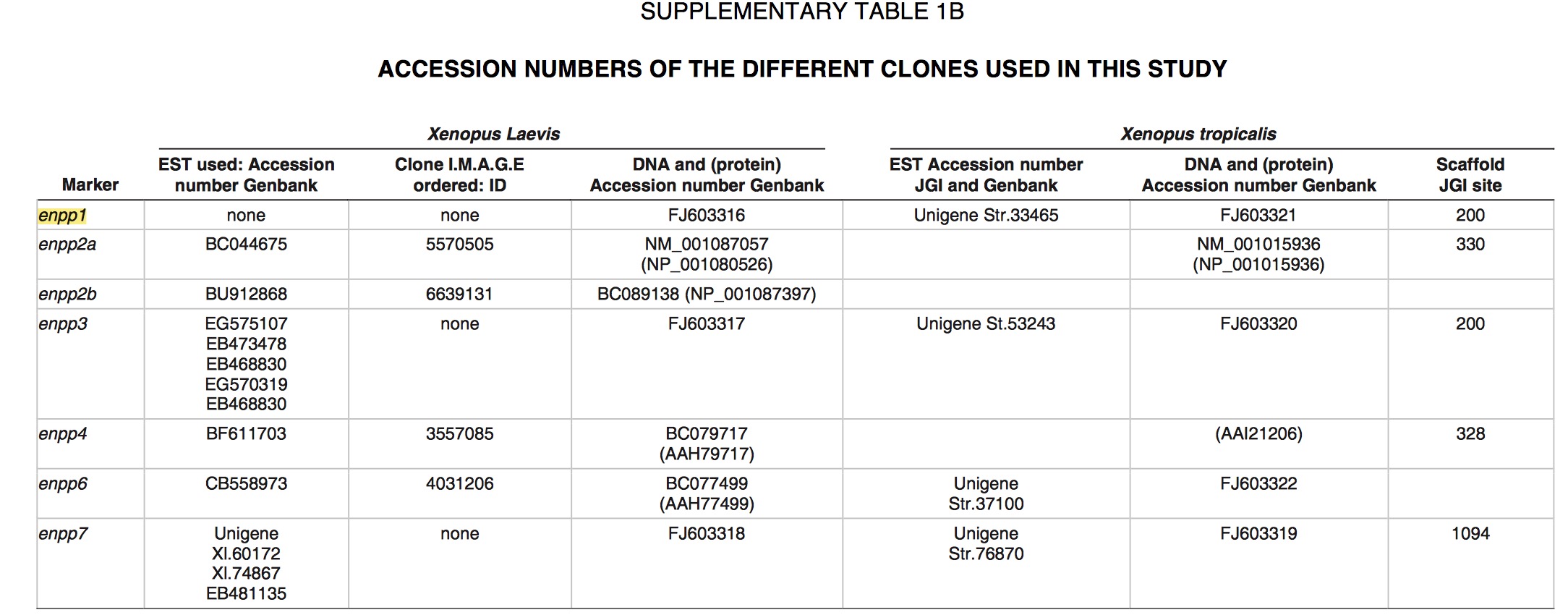 Suppl Table 1B. ACCESSION NUMBERS OF THE DIFFERENT CLONES USED IN THIS STUDY |