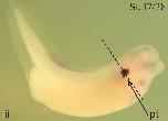 Nasal or olfactory placode (ns) and lymph hearts (left and right) (lh) are visible in this dorsal view of a NF stage 41 X. laevis tadpole, visualised via in situ hybridization for expression of enpp2a (ectonucleotide pyrophosphatase/phosphodiesterase 2). |