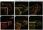 Fig. 2. HA levels increase during the first day of tail regeneration. (A-D) Tadpoles at stage 41/42 were amputated and fixed immediately (A), at 1 (B,C,E) or 2 (D,F) dpa. Sections were stained for bHABP (green) and nuclei (red) and analyzed by confocal microscopy. Insets show a higher magnification of the framed area. The arrow and arrowhead point to the presence of HA in the mesenchymal cells and the terminal ampulla, respectively. For experiment in panel B sections were also incubated with an excess of HA to demonstrate specificity of HA staining. (E,F) Effect of 4-Mu in HA levels. Tadpoles at stage 41/42 were amputated, incubated with 4-Mu 150 μM for 24 h and fixed at 1 (E) and 2 (F) dpa and stained for HA as above. Note the reduction in HA levels at 1 dpa. Scale bars: 50μ m. |