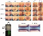 Figure 3. Disruption of Rnd1 and Rnd3 expression patterns by overexpression of dominant-negative or active form of Notch signal genes. A-L prime : Water (A-D,Q-T), mRNA of (E-H,U-X,I prime ,K prime ) DN-XDelta2, (I-L,Y-B prime ) MT-ICD, or (M-P,C prime -F prime ,J prime ,L prime ) Su(H)DBM was injected on one side of the four-cell stage embryos with green fluorescent protein (GFP) mRNA for tracer. At the neurula stage (A-F prime ) or tail bud stage (I prime -L prime ), GFP signal was observed in the injected embryos as a lineage trace (G prime ,H prime ), and stained in whole-mount for the expression of ESR5 (A,E,I,M), Thy1 (B,F,J,N), Rnd1 (C,G,K,O,Q,R,U,V,Y,Z,C prime ,D prime ), and Rnd3 (D,H,L,P,S,T,W,X,A prime ,B prime ,E prime ,F prime ,I prime -L prime ). Red arrows show gene expression domains (A-E prime ), and red brackets or arrowheads show Rnd3 expression domains in somite or presomitic mesoderm (PSM), respectively (I prime -L prime ). A-P: Embryos are oriented with anterior to the top, and dorsal views are shown. Left: Noninjected; right: injected side of mRNAs. Q-F prime : Embryos are oriented with anterior to the top, dorsal to the right (Q,S,U,W,Y,A prime ,C prime ,E prime ) or left (R,T,V,X,Z,B prime ,D prime F prime ), and lateral views are shown. I prime -L prime : Embryos are oriented with anterior to the left, dorsal to the top (K prime ,L prime ) or bottom (I prime ,J prime ), and lateral views are shown. N: noninjected; I: injected side of mRNAs. |