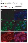 Fig.7. Centrosomal localization of Diversin was disrupted by the C-terminal construct. (A) Scheme showing the C-terminal construct of Diversin (Div-C). Ank, ankyrin repeats (grey bar); M, middle region; C, C-terminal region; cc, coiled-coil motif. (B-D) Cryosections from embryos injected with 0.5 ng HA-Diversin RNA and/or 1 ng RFP-Div-C RNA. Staining with anti-HA (B,C) and anti-Diversin (D) antibodies revealed the disruption of the centrosomal localization of HA-Diversin by Div-C. Scale bar: 20 μm. |